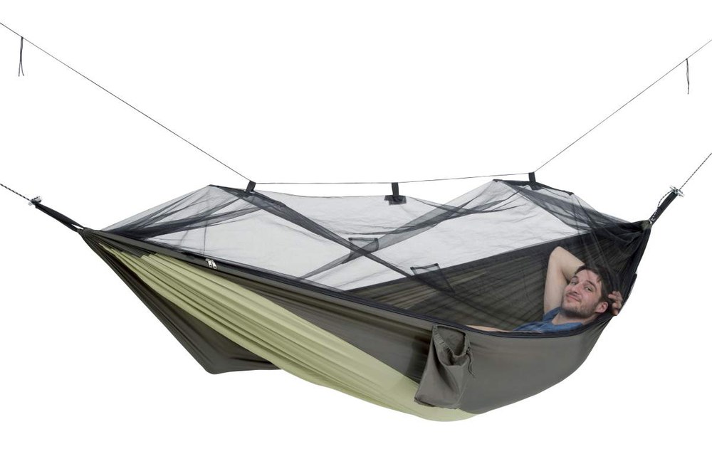 A szúnyogmentességet biztosító, kültéri függőágy azok kényelmére szolgál, akik nem szeretnek cipekedni, és szívesen alszanak a szabadban. Mindkét oldala használható, szúnyoghálóval vagy anélkül.