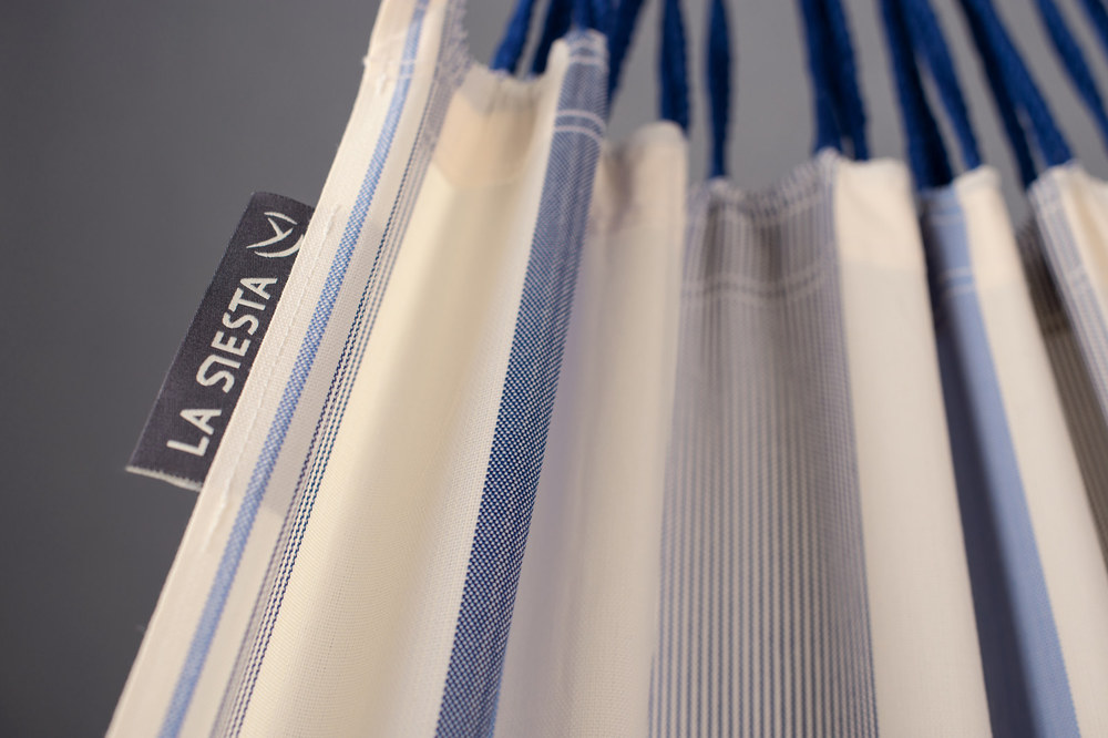 A La Siesta Brisa függőágy egész nyáron a szabadban hagyható! A Brisa ugyanis HamacTex® polipropilénől készül. Ez az alapanyag ellenáll az időjárás viszontagságainak, gyorsan szárad, és mégis meglepően hasonló a pamuthoz – mind küllemre, mind pedig tapintását tekintve. A függőágy szakadásbiztos széleit egy speciális technikával, a vetülékfonalak duplázásával alakítják ki – így tulajdonosa hosszú évekig élvezheti a La Siesta Brisa által nyújtott békés oázis érzését.