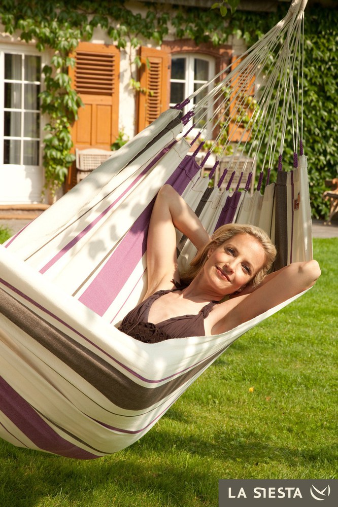 A kolumbiai textil függőágyak jellegzetes tulajdonsága a nyitott felfüggesztő hurok, mely hozzájárul a függőágy jobb kinyithatóságához. A Caribena függőágy két vidám színben kapható: kék és lila csíkos.