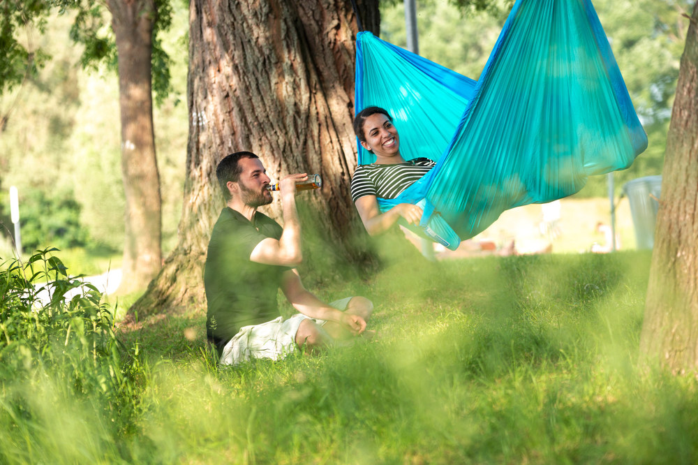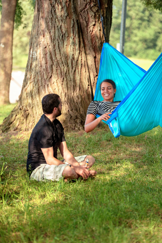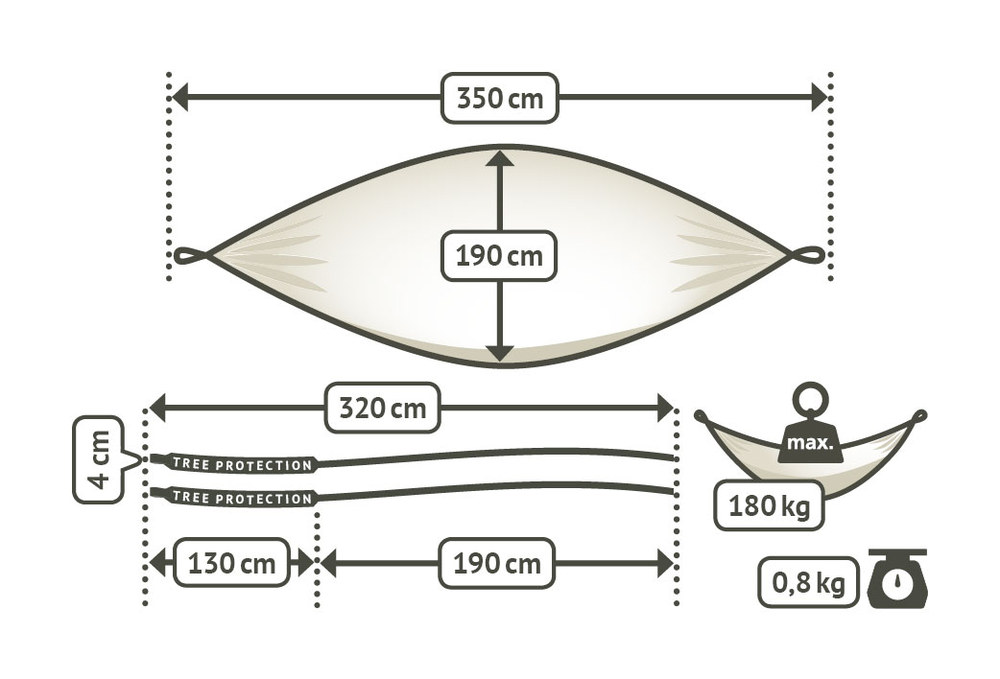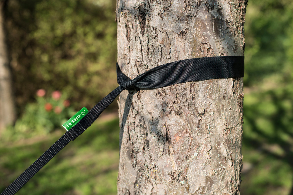 Az opcionális CrocodileHook alumínium kampók és a hevederek segítségével könnyen állítható a magasság. A 40 mm széles heveder optimálisan tartja a függőágyat és megvédi a fa kérgét.