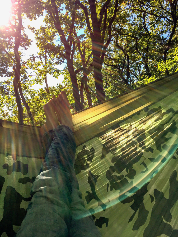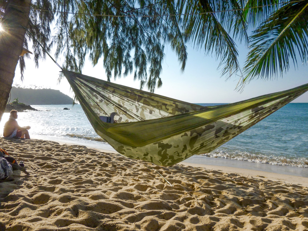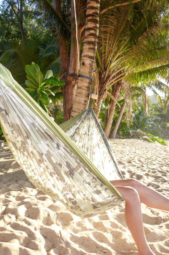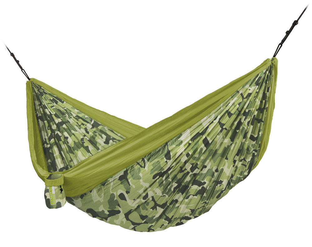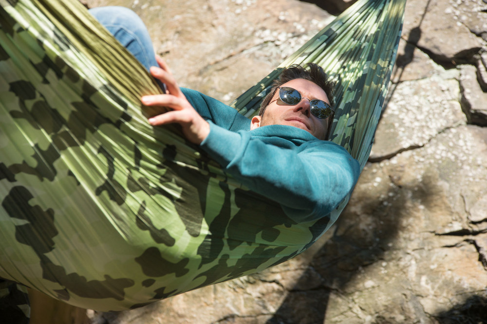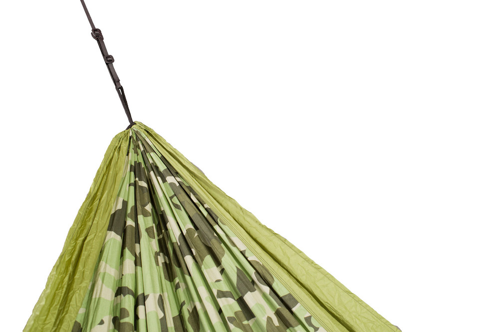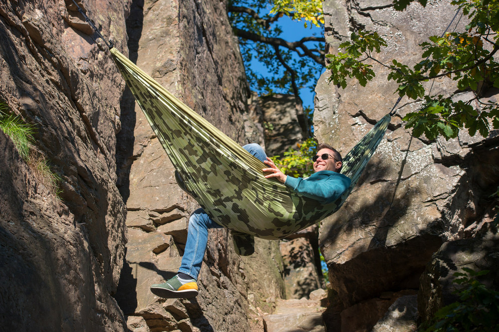 Az opcionális CrocodileHook alumínium kampók és a hevederek segítségével könnyen állítható a magasság. A 40 mm széles heveder optimálisan tartja a függőágyat és megvédi a fa kérgét.