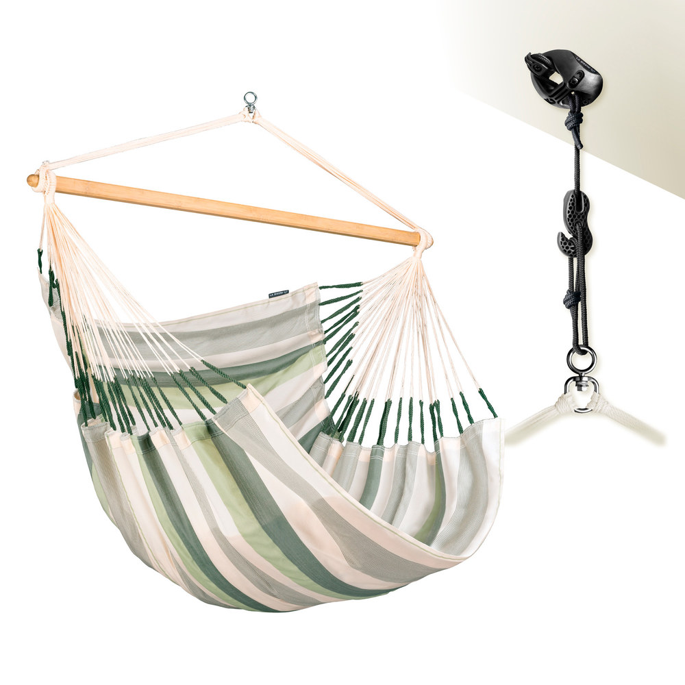 A dupla vetülékszálak biztosítják, hogy a függőszék szakadásbiztos legyen, és hosszan élvezhesse használója a Domingo adta kényelmet. A teherelosztó farúd kiváló minőségű keményfából készült, mely az Erdőgondnoksági Tanács (FSC®-Forest Stewardship Council®) által ellenőrzött erdőkből származik. A La Siesta függőszékek különleges jellemzője az integrált biztonsági forgó, amely a függőszék forgását könnyűvé és ezáltal hosszan használhatóvá teszi. Ha tökéletes pihenőhelyet szeretne kertjébe, válassza a Domingo függőszéket.