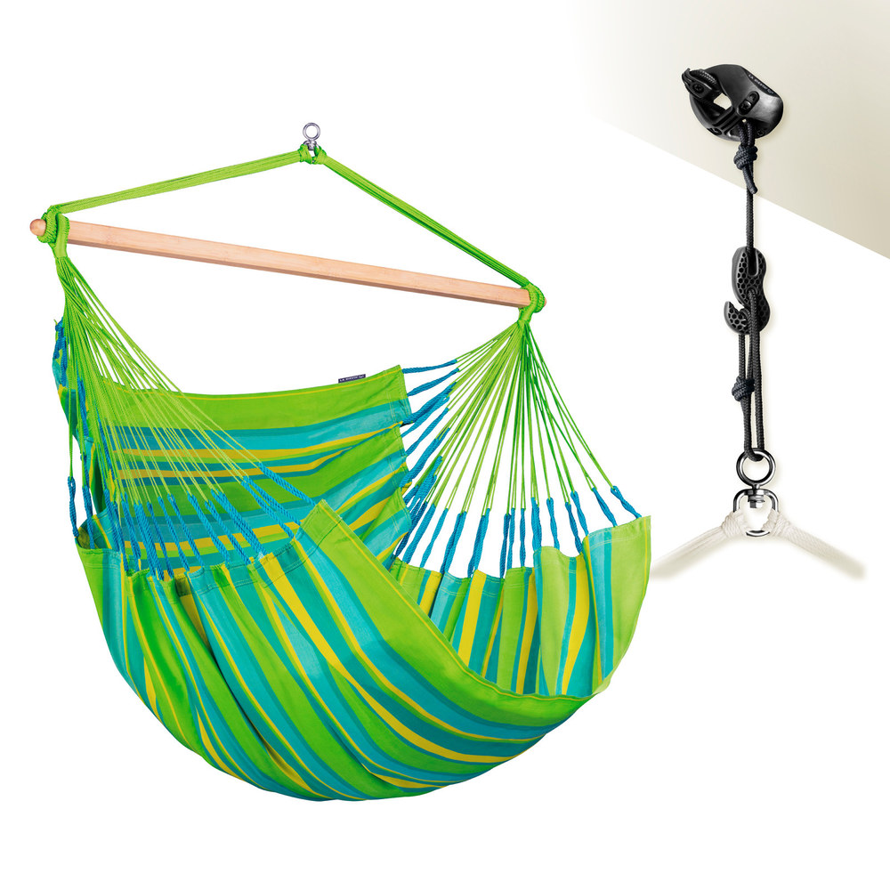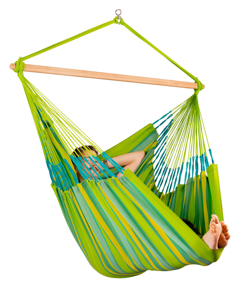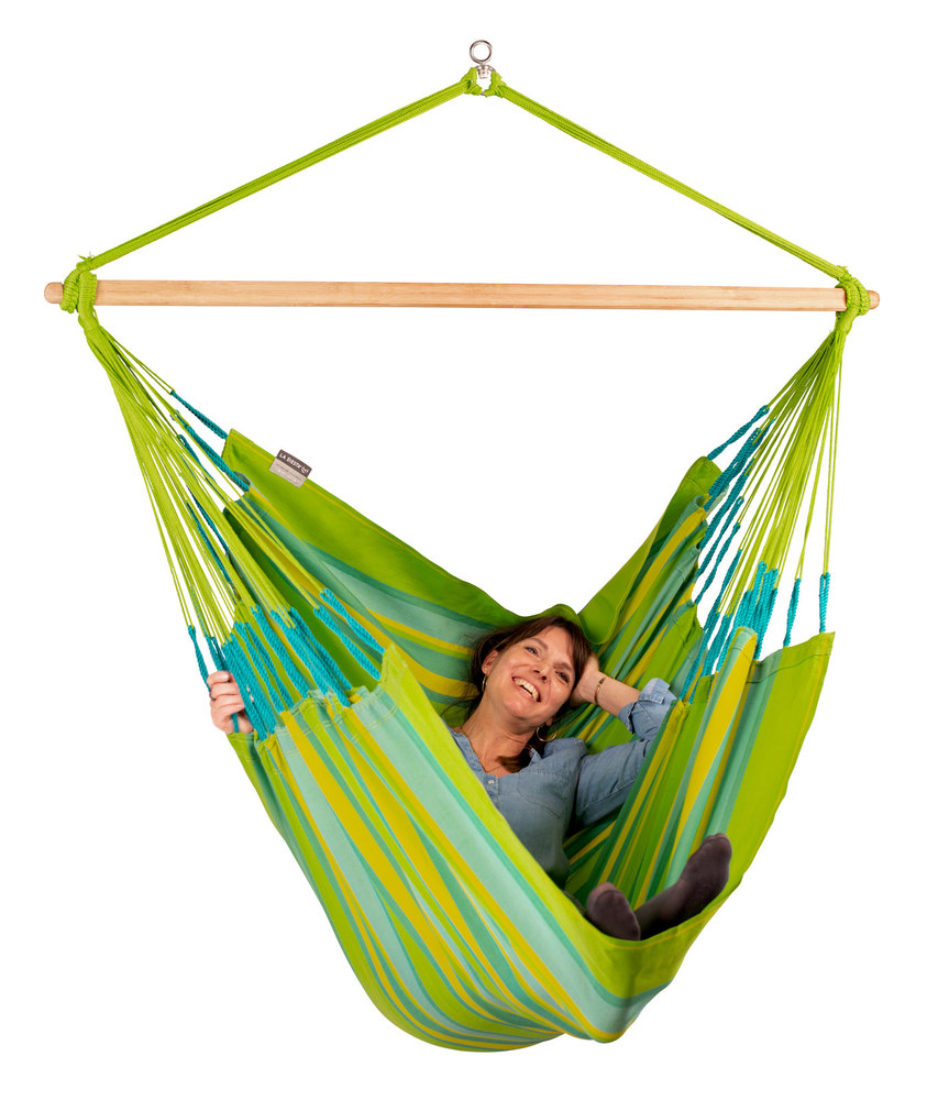 A dupla vetülékszálak biztosítják, hogy a függőszék szakadásbiztos legyen, és hosszan élvezhesse használója a Domingo adta kényelmet. A teherelosztó farúd kiváló minőségű keményfából készült, mely az Erdőgondnoksági Tanács (FSC®-Forest Stewardship Council®) által ellenőrzött erdőkből származik. A La Siesta függőszékek különleges jellemzője az integrált biztonsági forgó, amely a függőszék forgását könnyűvé és ezáltal hosszan használhatóvá teszi. Ha tökéletes pihenőhelyet szeretne kertjébe, válassza a Domingo függőszéket.