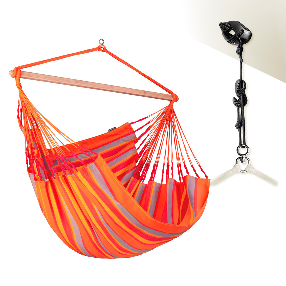 A dupla vetülékszálak biztosítják, hogy a függőszék szakadásbiztos legyen, és hosszan élvezhesse használója a Domingo adta kényelmet. A teherelosztó farúd kiváló minőségű keményfából készült, mely az Erdőgondnoksági Tanács (FSC®-Forest Stewardship Council®) által ellenőrzött erdőkből származik. A La Siesta függőszékek különleges jellemzője az integrált biztonsági forgó, amely a függőszék forgását könnyűvé és ezáltal hosszan használhatóvá teszi. Ha tökéletes pihenőhelyet szeretne kertjébe, válassza a Domingo függőszéket.