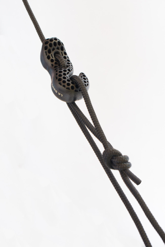 A konstrukció nagyon praktikus, az anyag ellenáll az UV-sugaraknak és időjárásálló. A felfüggesztés ezen módja nem csupán leegyszerűsíti a kötél hosszának adaptációját, de lehetővé teszi a függőágy gyors felszerelését és eltávolítását.