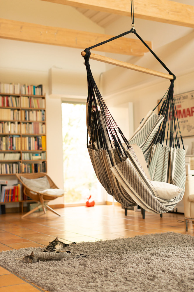 A Habana zebra függőfotel fantasztikusan kényelmes és tágas, organikus pamut anyagból készült - a súlytalanság érzetét biztosítja.
