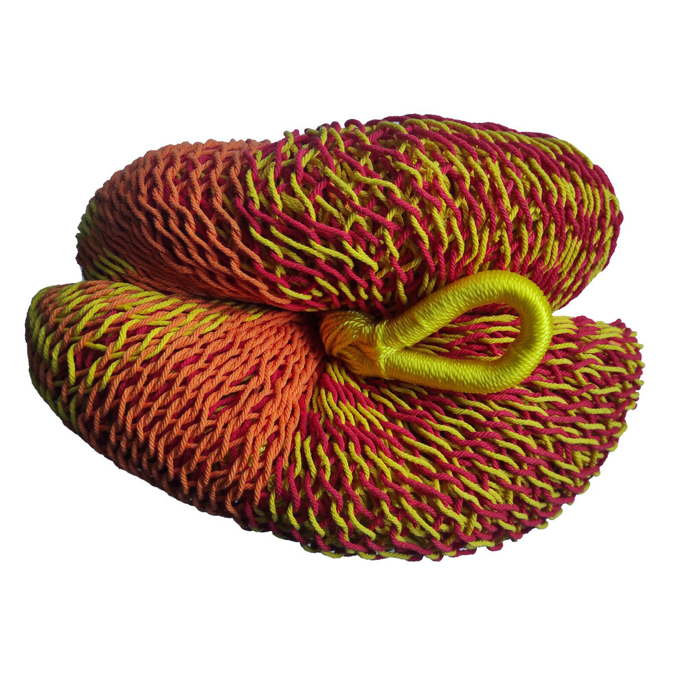 A hagyományos 'sprang' szövési technikának köszönhetően a függőágy tökéletesen felveszi a test alakját. A párhuzamos, de egymásba hurkolt szálak olyan felületet alkotnak, amely hosszanti irányban fix, keresztben rugalmas. A legnagyobb hőségben is szellős, kellemesen hűsít a szálak között átjáró levegő.