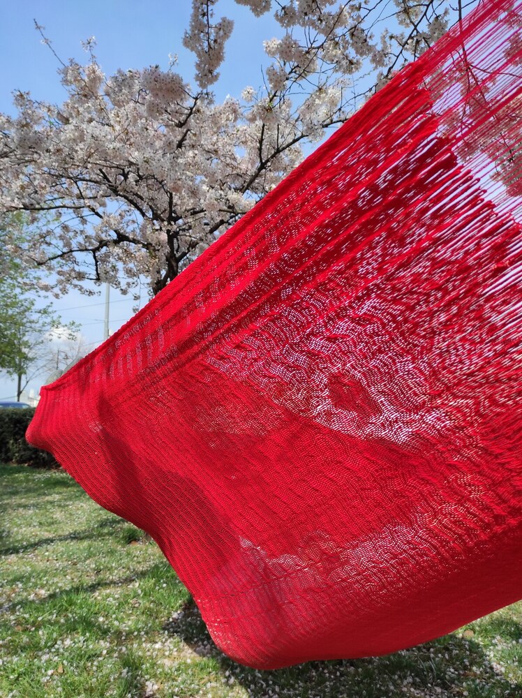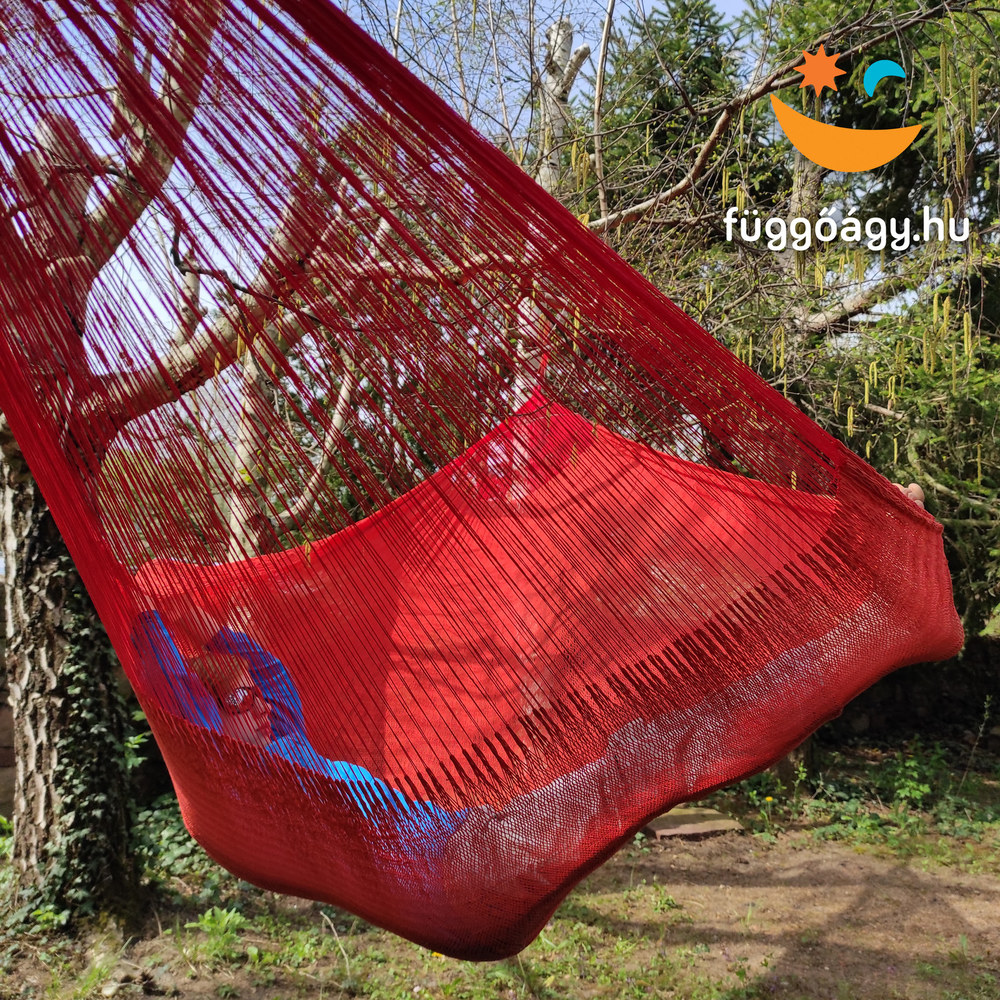 A hagyományos 'sprang' szövési technikának köszönhetően a függőágy tökéletesen felveszi a test alakját. A párhuzamos, de egymásba hurkolt szálak olyan felületet alkotnak, amely hosszanti irányban fix, keresztben rugalmas. A legnagyobb hőségben is szellős, kellemesen hűsít a szálak között átjáró levegő.