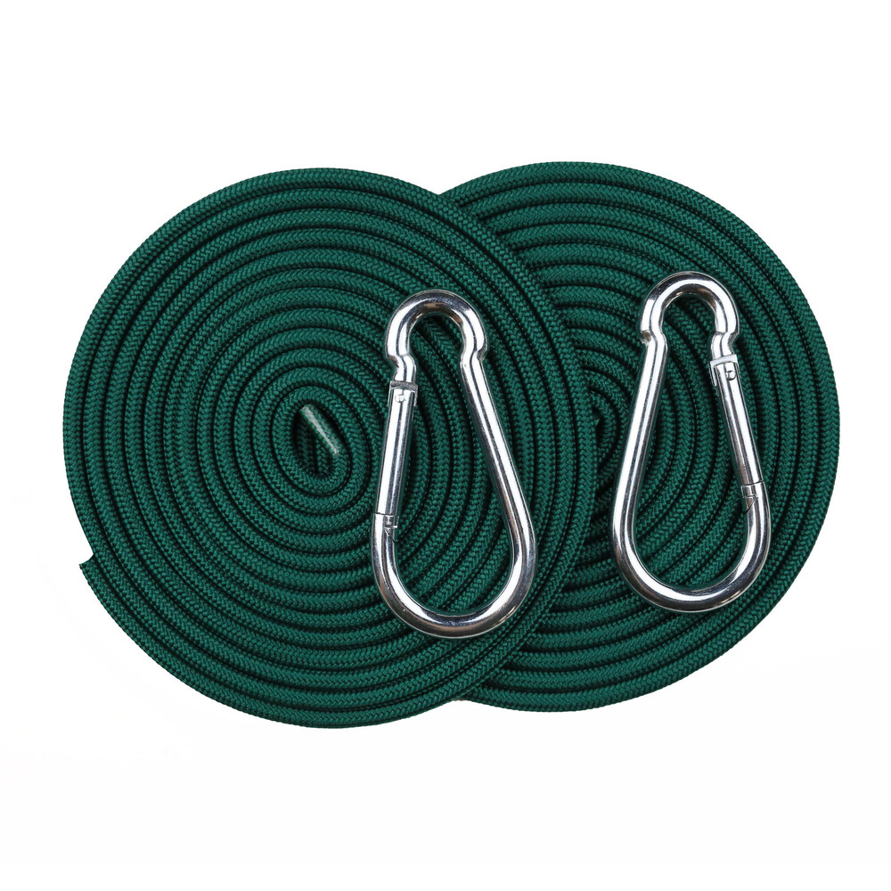 A kötelet duplán érdemes áthurkolni a fán/gerendán/bármin, és a karabinerrel egyszerűen ráakasztod a függőágyat, lásd a bolgban...