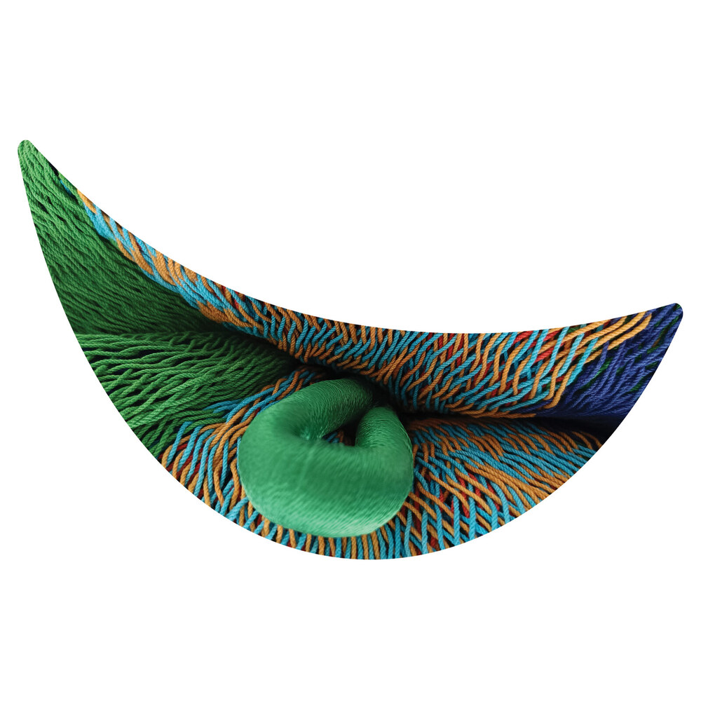A hagyományos 'sprang' szövési technikának köszönhetően a függőágy tökéletesen felveszi a test alakját. A párhuzamos, de egymásba hurkolt szálak olyan felületet alkotnak, amely hosszanti irányban fix, keresztben rugalmas. A legnagyobb hőségben is szellős, kellemesen hűsít a szálak között átjáró levegő.