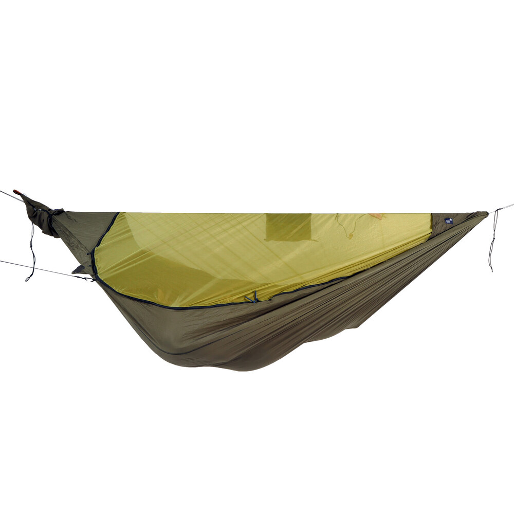 A legújabb a TTTM választékában a szúnyoghálóval egybeépített eredeti ejtőernyőselyemből készült túrafüggőágy. Könnyen használható megoldás a rovarvédelem mellett történő szabadban alváshoz. A kényelem és a funkcionalitás maximalizálva, a tömeg pedig minimalizálva.
