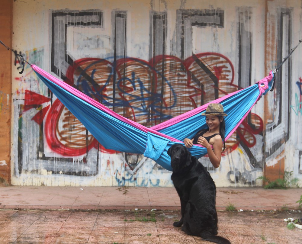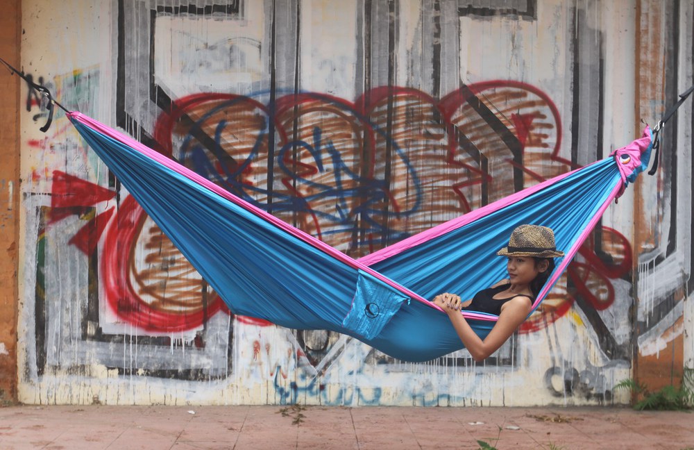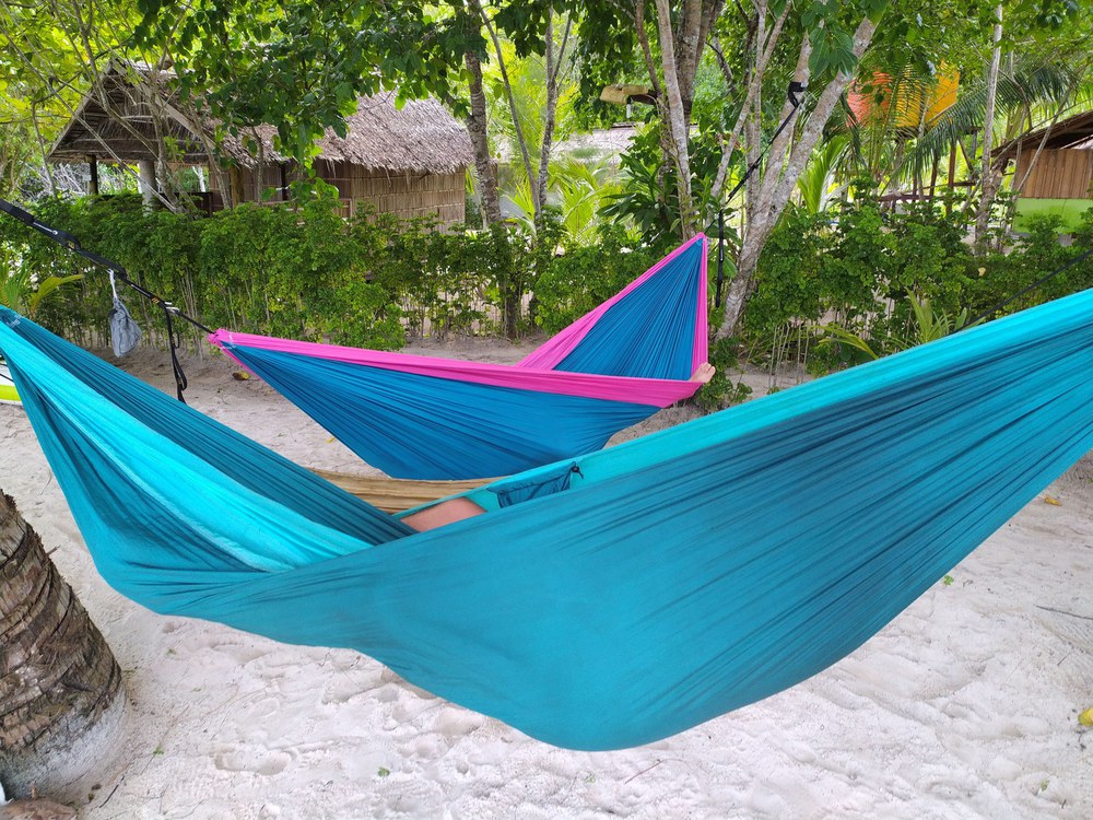 Az eredeti ejtőernyőselyem függőágy, extra nagy méretben. Harminc centivel szélesebb, mint a Double méret.