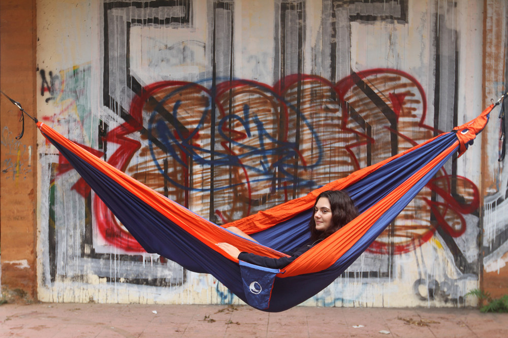 Az eredeti ejtőernyőselyem függőágy.
