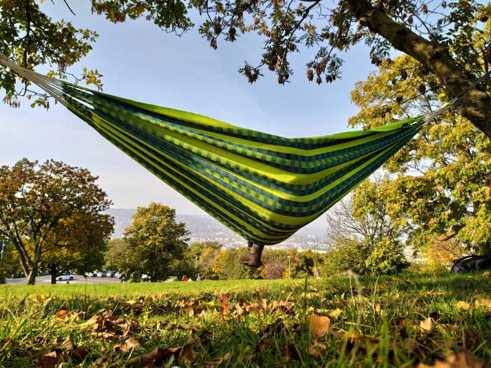 - Azonos anyagból készült hordozó/tároló válltáska jár a függőágyhoz.