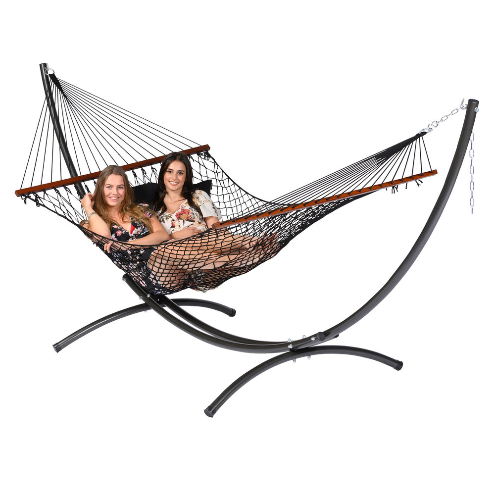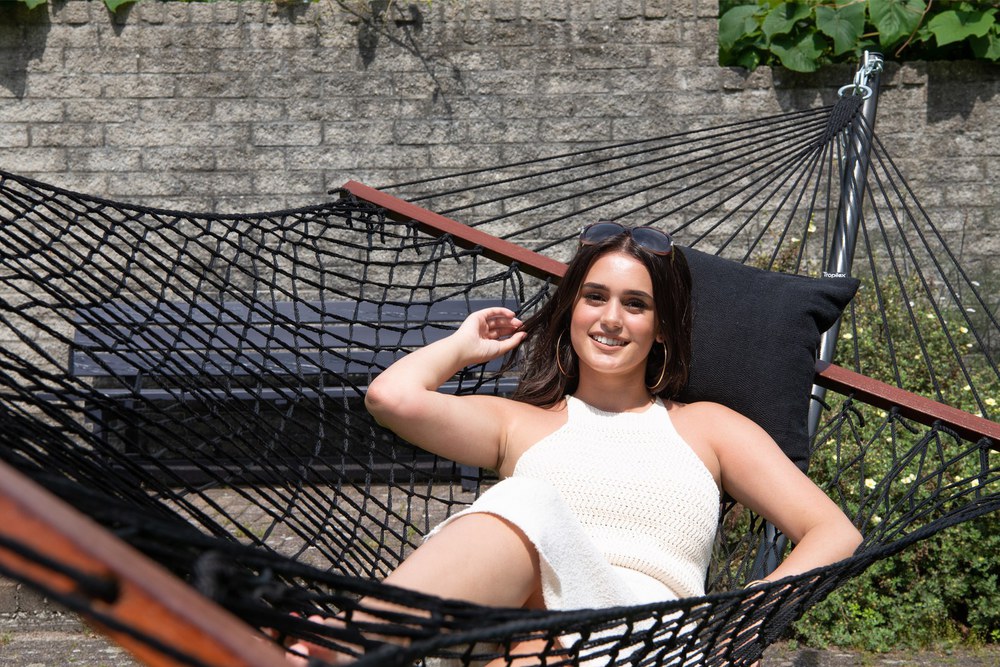 A háló nem csomózott, hanem fonott, így a végeredmény nagyon kényelmes. Az egyedülálló kettős fonási technika akár 40%-kal nagyobb teherbírást kínál, mint a hasonló függőágyak.